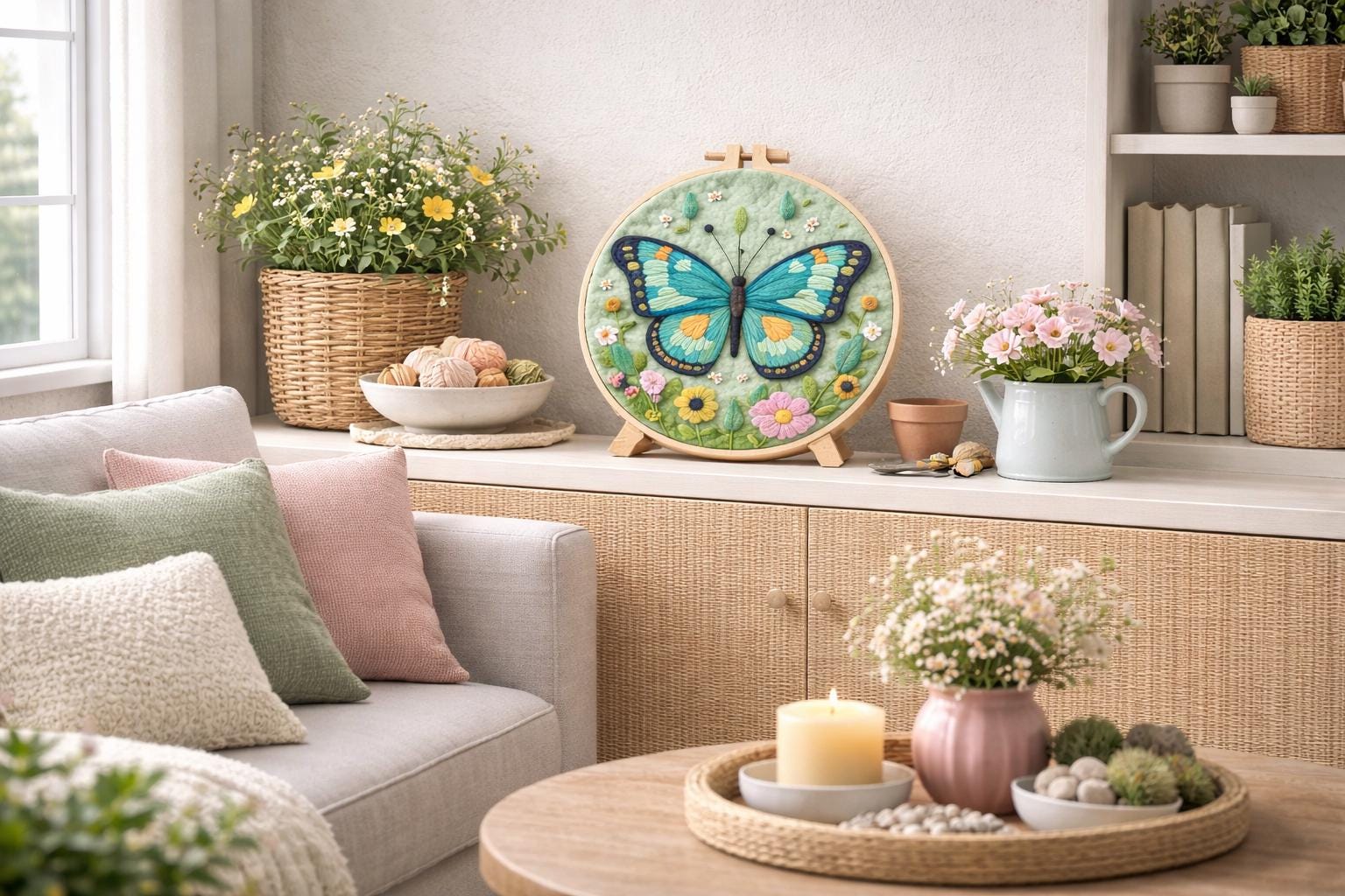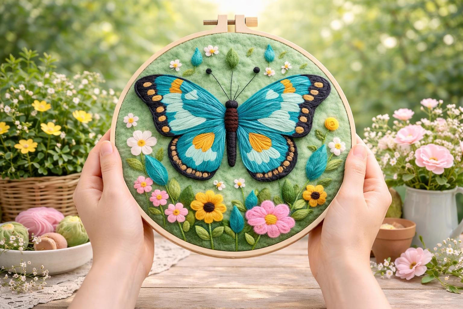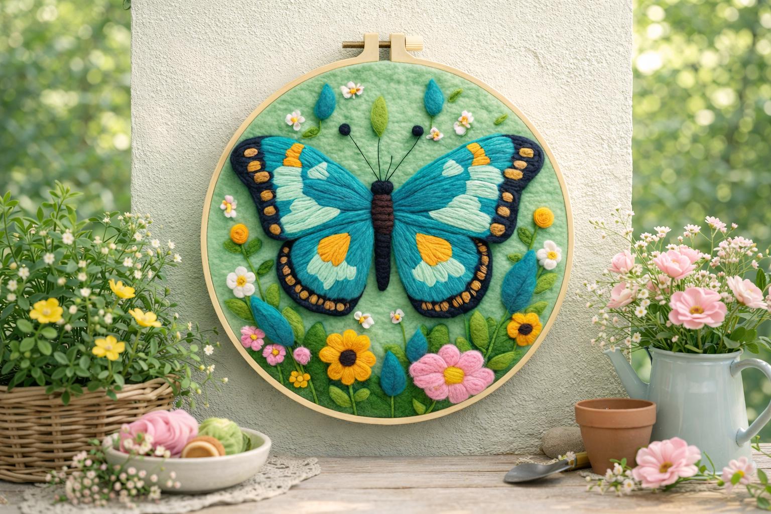 Butterfly Needle Felting Kit for Beginners DIY Wool Embroidery Hoop Floral Wall Decor Gift